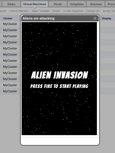 No prior JavaScript programming experience is required, just make sure you have oVirt Engine up and running on your system. Oh, and once we’re done creating our plugin, be prepared to blast some aliens!