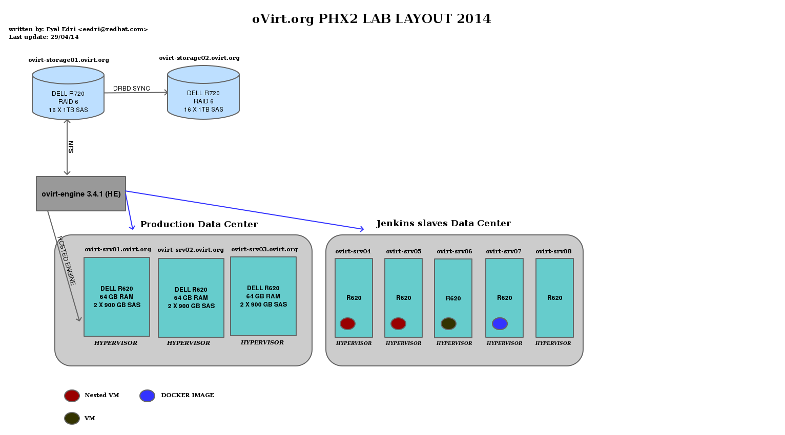 The Infra team is planning to migrate all services to a new data center lab placed in pheonix, US. This document will explain the phases for this migration and what and when each phase will include. The migration is lead by David Caro dcaro@redhat.com and Eyal Edri eedri@redhat.com from the oVIrt Infra team.