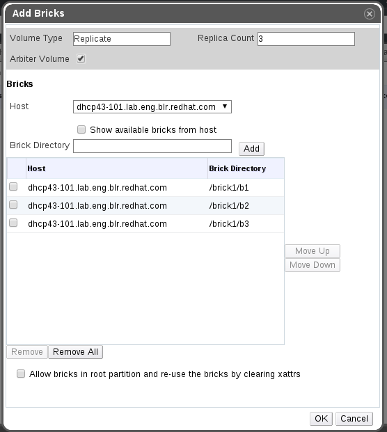 Arbiter Volume check box will be added to the Create Volume Popup and it will be shown when user creates a Replica Volume. Same check box will be added to Add Brick’s pop up and it will be shown only in Create Volume flow with Replica Volume. Arbiter volume should be replica 3 volume and respective validation is added to Add Bricks popup.