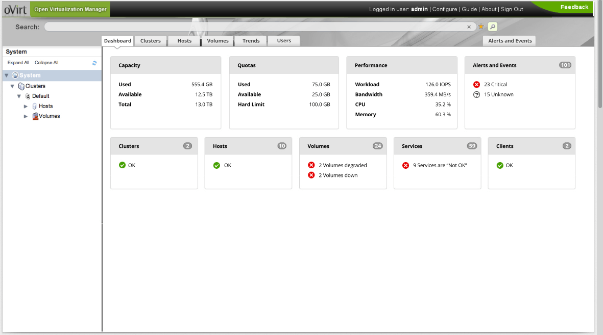 This document describes the design of a dashboard for Gluster. Dashboard will be developed as an UI Plugin using the Ovirt UI Plugin Infrastructure and Ovirt REST API.