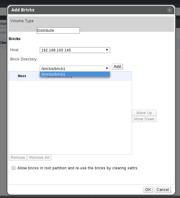 This feature enables Gluster volume creation and add brick to existing volume more easier and meaningful by showing list of bricks of each hosts. Now user selects bricks than typing them. Below is new screen for add brick.