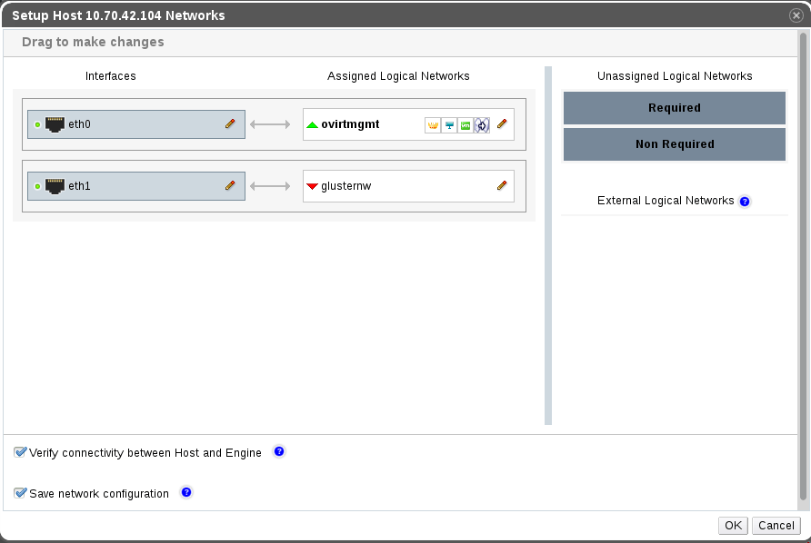 In case, the user wants to continue to add brick’s using host’s FQDN (for instance, when they have DNS setup outside of oVirt to separate out networks), no interfaces should be marked with the “Storage network” role.