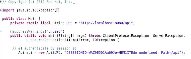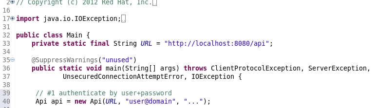 Api api = new Api("http://localhost:8080/api", "user@domain", "password");