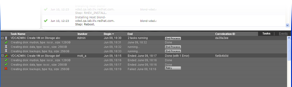 - Define a correlation-id which used to identify an action spread cross-layers (Client–> Backend –> VDSM).