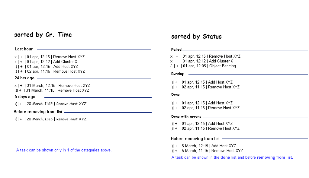 A Task Manager is a monitor which shows the current actions running in ovirt-engine and tracks their progress. It also capable of presenting completed commands for a period of time. The current design describes tasks monitoring. Task Manager feature page