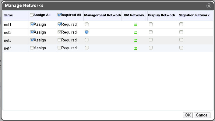 - The cluster management network will be used as display and/or migration network fallback (e.g. in case of removing a network from a cluser/host).