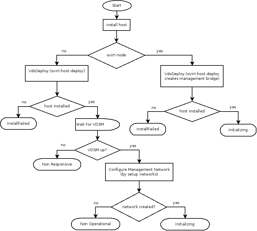 - After the ovirt-host-deploy ends, the engine will await to VDSM to become responsive for 2 minutes. If it fails, the host will move to ‘non responsive’.