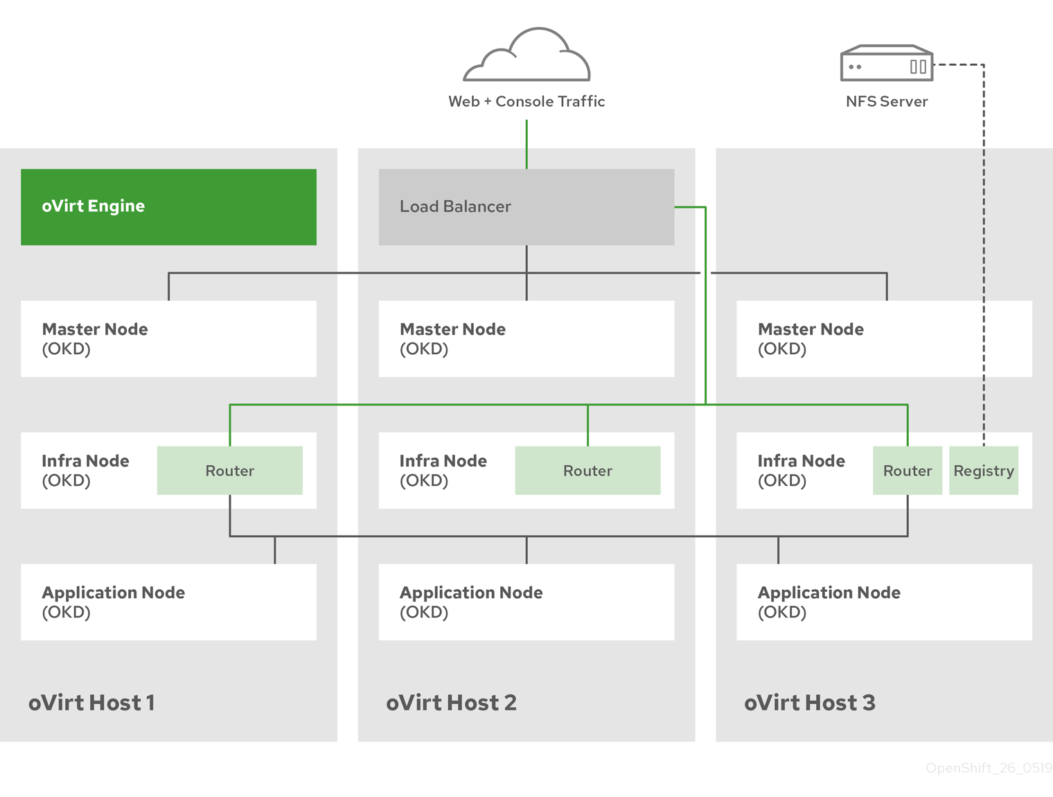 Today oVirt is fast, performant and stable solution for enterprise workloads. It is easy to manage, fast to deploy, and provides integrated storage handling. Deploying openshift on top of VMs from oVirt benefits all the advantages mentioned above. To go one step further, containers running on this form of deployment can get direct access to the storage served by oVirt.