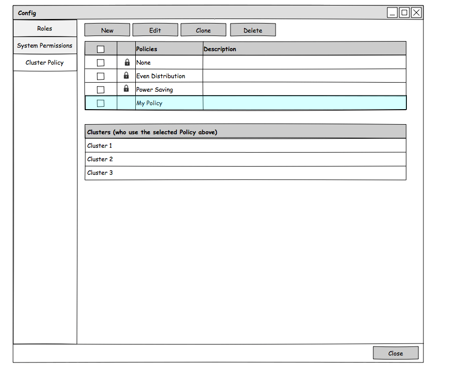 - Policies will be configured on a system level in configure dialog, much like Roles.