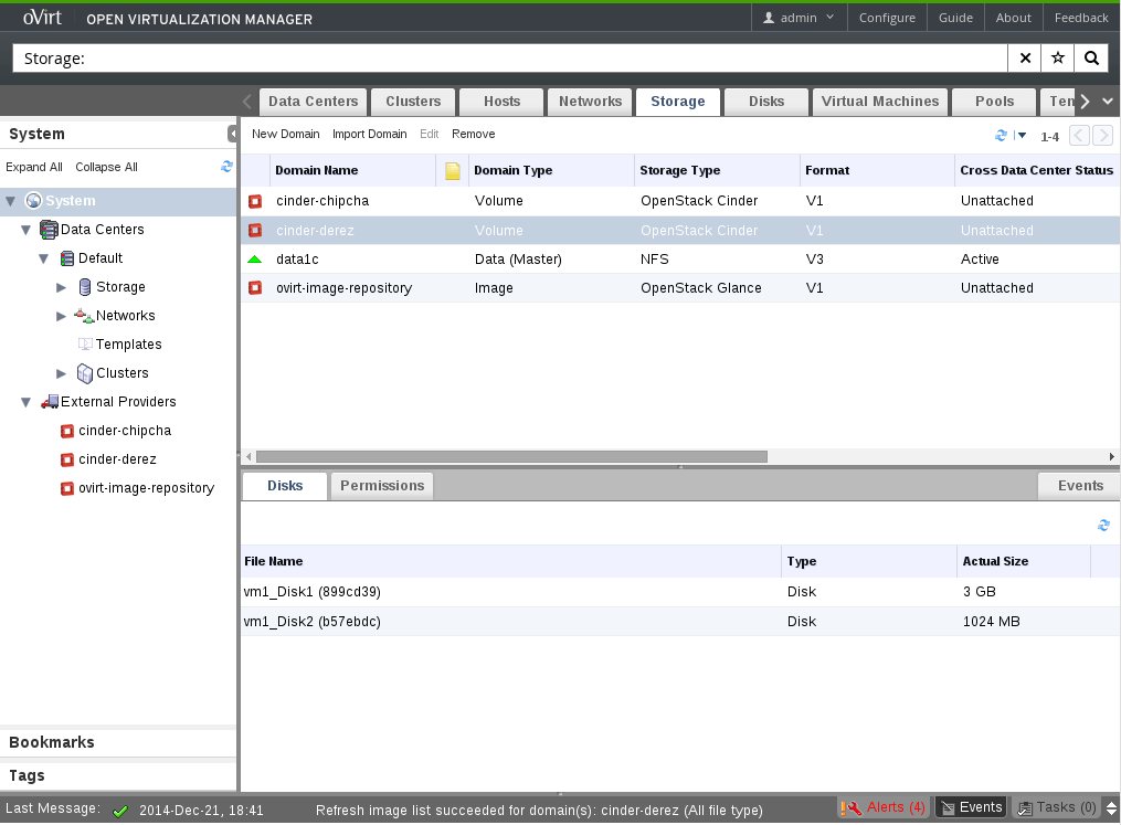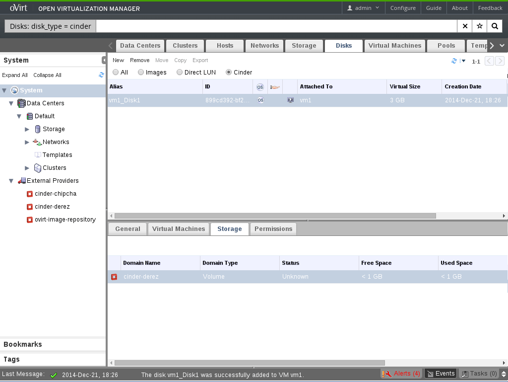 Register Cinder Disks (under Storage)