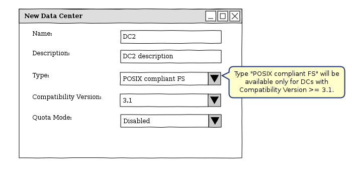 This feature will allow to define a DC of a customizable type. The storage domains in this DC will be mounted with custom properties and will support file system based storage domains which do not necessarily rely on NFS.