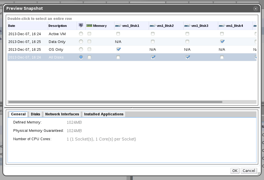 - Allow creation of a customized snapshot. I.e. selecting which disks to take snapshot on.