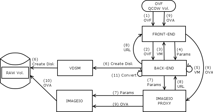 - VDSM runs ovirt-ova tool - creates the OVA in the destination (using qemu-img convert which may include file format conversion).