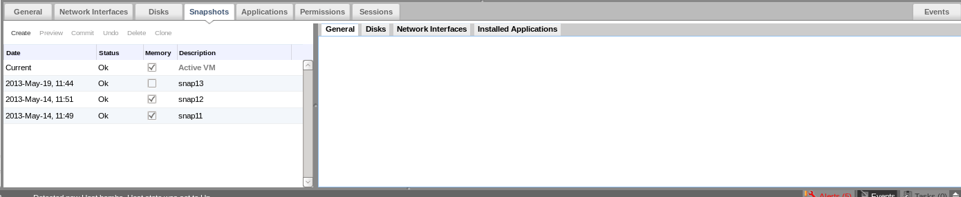 - Check that the active snapshot appears without memory in the snapshots subtab