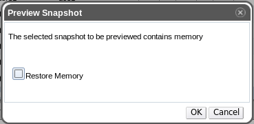 In case a VM is set to preview or revert to a snapshot that includes memory, the user will be able to choose whether to restore the saved memory or not.