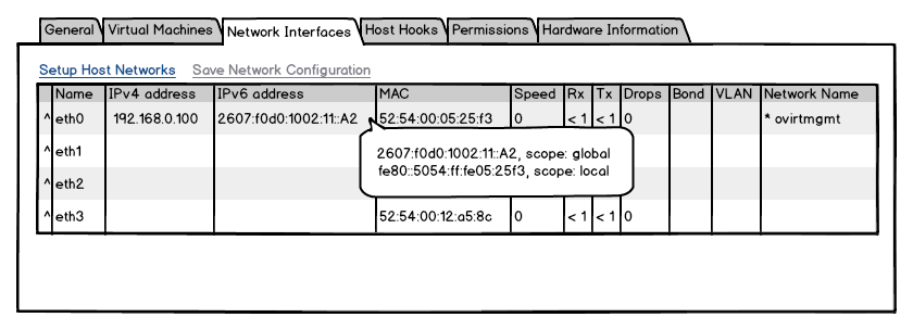 - Configuring Ipv6 properties in Setup Networks dialog in oVirt GUI.