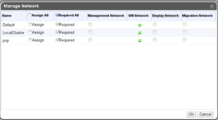 - The cluster management network will be used as display and/or migration network fallback (e.g. in case of removing a network from a cluser/host).
