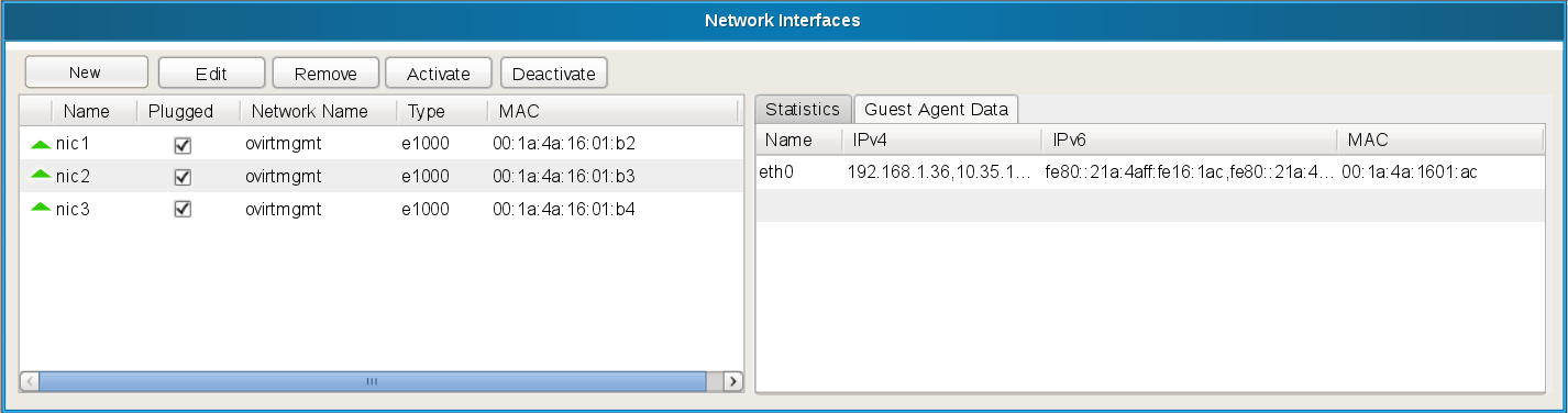 A split view of the VM’s Network Interfaces sub-tab will present the information reported by the Guest Agent: