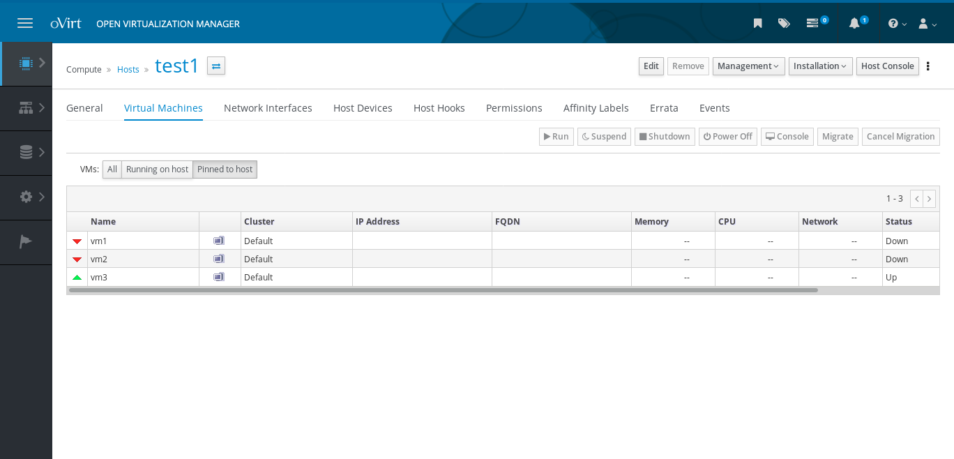 - Show the pinned VMs in the webadmin in