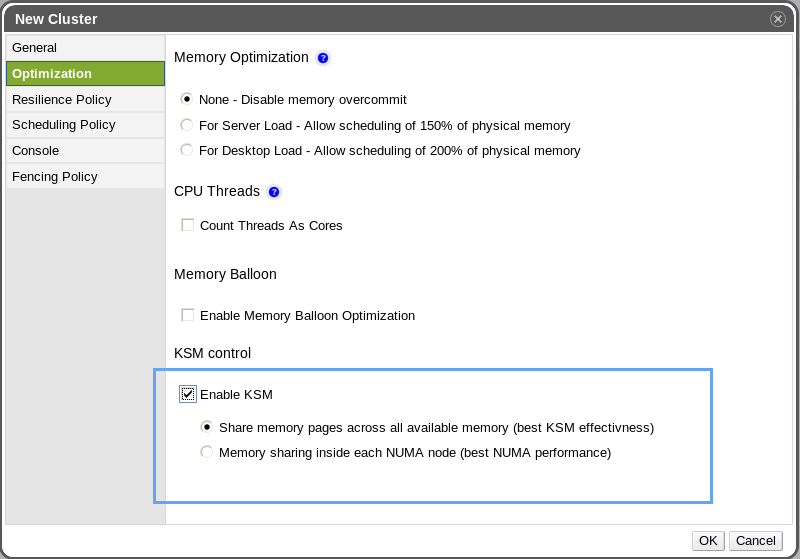 Update cluster with with NUMA aware KSM policy = KSM share NUMA nodes.