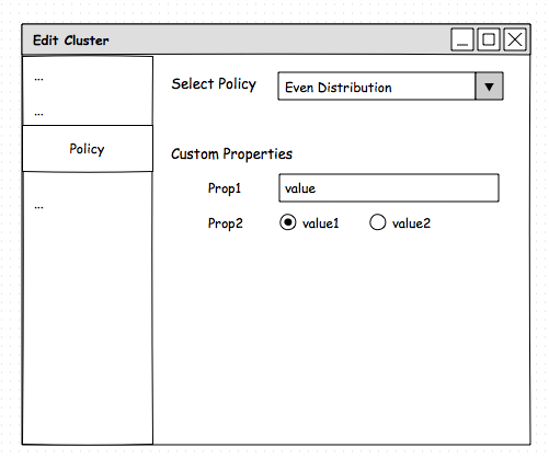 Cluster’s policy will have a set of filters, cost functions and a single balancing logic implementation. To allow easy coupling between the logic of these three, a single class will be provided.