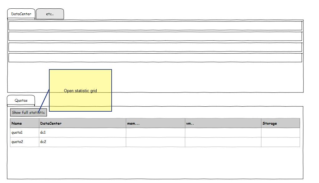 - Since quota is an entity in data center scope, the quota main tab will be visible only when selecting a data center in the tree navigation panel.