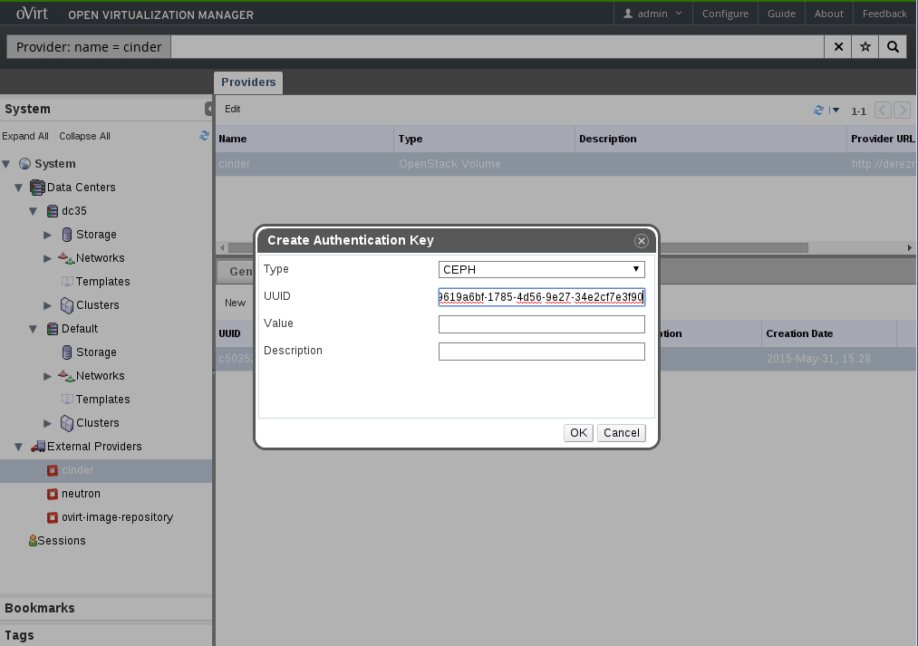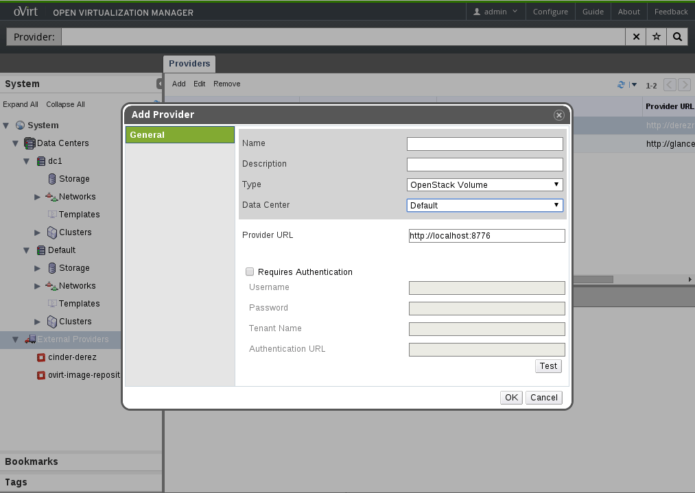 OpenStack Volume Provider Dialog