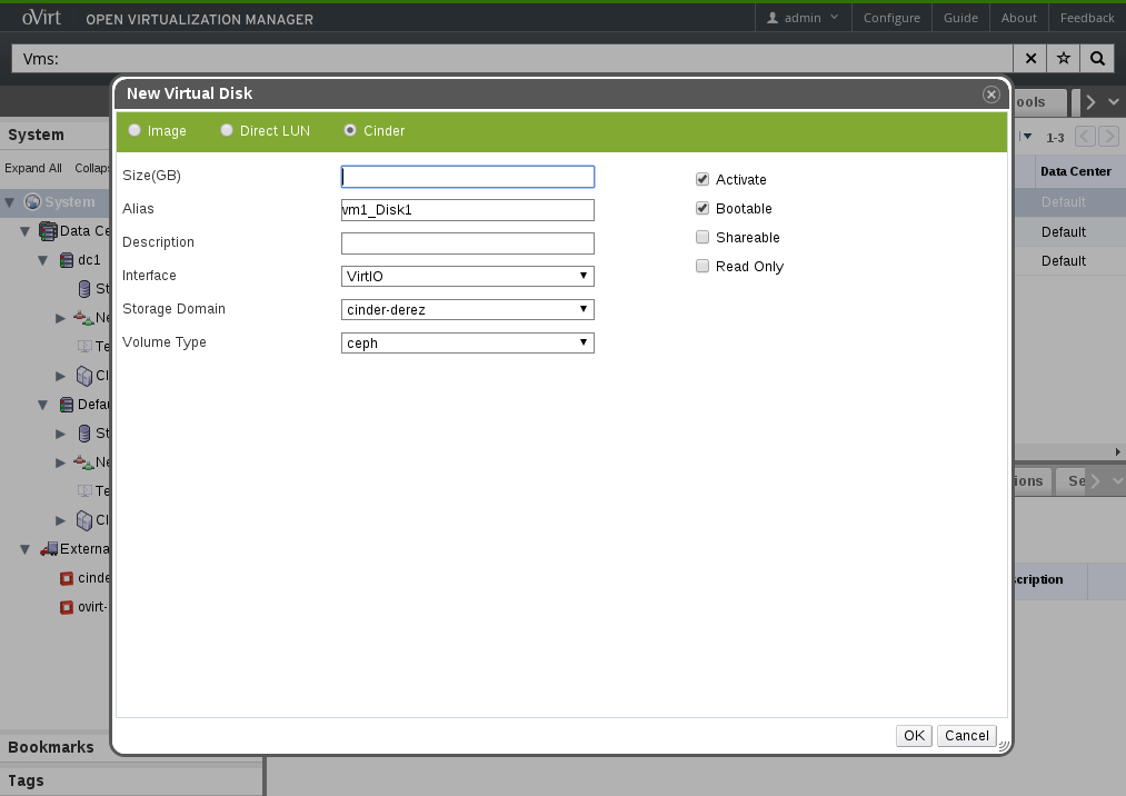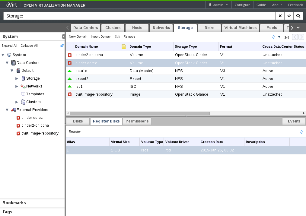 Register Cinder Disks (under Storage)