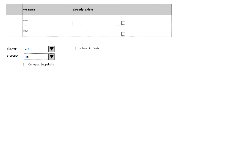 note: the following mockups are of ImportVM, in ImportTemplate the ‘Collapse Snapshot’ check box is hidden, and also any label that is relevant to it.