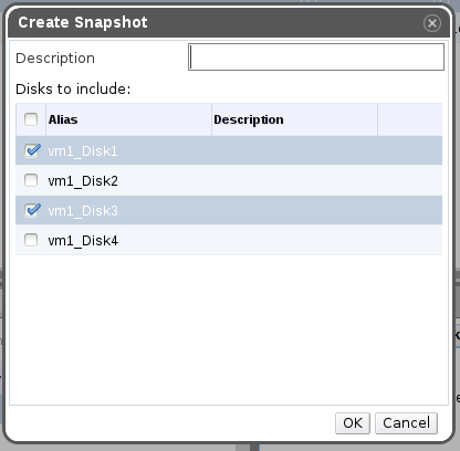 - Allow creation of a customized snapshot. I.e. selecting which disks to take snapshot on.
