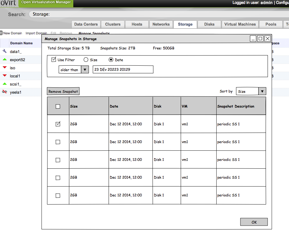 Snapshots overview and management in context of a storage domain.
